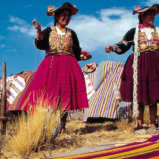 Day 2: Morning visit to the Uros Islands. These islands are made of reeds, rising six meters above the lake level. They are anchored by logs and connected to each other by ropes. The main activities of the people who live here are fishing and handcrafting several items that they sell to visitors. Continue to Taquile Island which has two essential characteristics; its geography, offering a spectacular view from its hills, and its standing as a first-rate textile center. Taquileños live on their textile activities. This can easily be seen in the men walking about in rubber sandals (‘ojotas’ in quechua), wearing black pants, white flannel shirts and beautiful, finely woven chumpis (belts), covering their heads with finely knitted warm ‘chullos’ (caps with ear flaps). (BXL)
